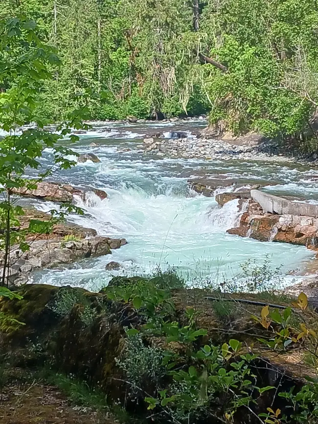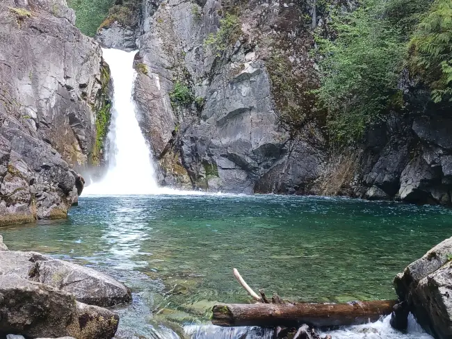 Take a short, scenic hike along beautiful, crystal clear China Creek to discover this hidden gem just outside Port Alberni. China Creek Falls features a striking natural rock formation where the river carves a smooth, circular basin through solid stone. Enjoy the tranquil setting, wade in the cool, clear water, or simply relax and take in the beauty of this secluded, photogenic spot—perfect for a quiet nature escape or a refreshing summer dip.